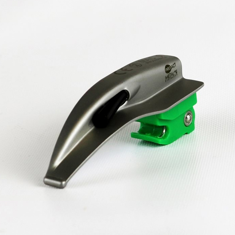 Los laringoscopios para uso en un solo paciente PROACT GS 90 Metal Max proporcionan una hoja de laringoscopio de metal desechable Green System de fibra óptica de primera calidad en una gama completa de tamaños desde Macintosh 0 hasta Macintosh 5, Miller 00 hasta Miller 4 y exclusivos de Proact, Cardiff-Pro 00, 0 y 1.
