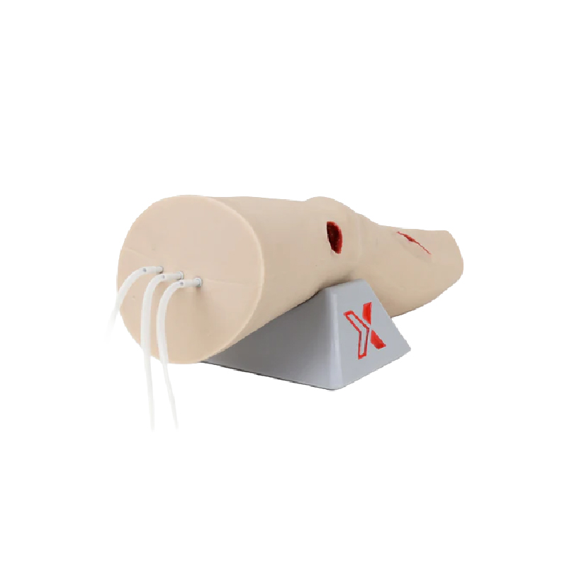 Simulador de pierna diseñado para el entrenamiento en manejo de trauma y control de hemorragias en extremidades inferiores. Este entrenador permite practicar técnicas esenciales utilizadas por personal de emergencias, paramédicos y profesionales sanitarios en situaciones críticas. Su diseño anatómico realista facilita la formación en procedimientos como la aplicación de torniquetes y el control de sangrados, siendo ideal para programas de capacitación en trauma y primeros auxilios avanzados.