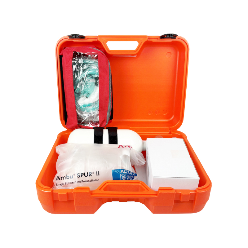 Maletín de emergencia resistente y compacto para equipos de reanimación.