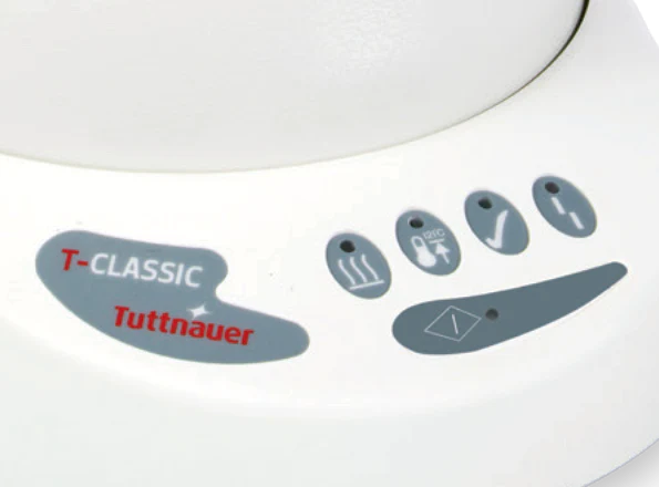 El T-Classic 9 es un dispositivo sencillo que se opera en un solo paso. Con un solo toque, el T-Classic 9 comenzará un ciclo automático hasta su finalización. Un detector electrónico apagará la alimentación si el nivel del agua es insuficiente. El autoclave perfecto para espacios limitados.