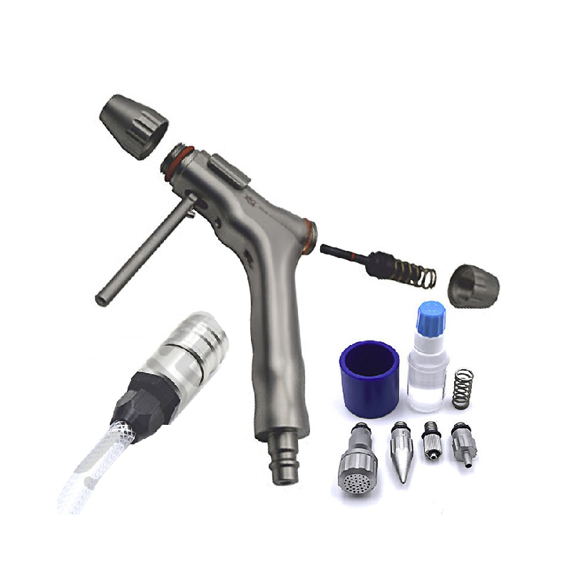 Pistola de limpieza de alta tecnología, boquilla puntiaguda, boquilla de ducha, conexión Luer, conexión Luer Lock, aceite de silicona, manguera de aire comprimido de tejido de PVC (KTW), salida de manguera con rosca exterior de ½» con cierre rápido de acero inoxidable -soltar el acoplamiento y un extremo libre de la manguera, tapa protectora del acoplamiento, resorte de repuesto del pistón.